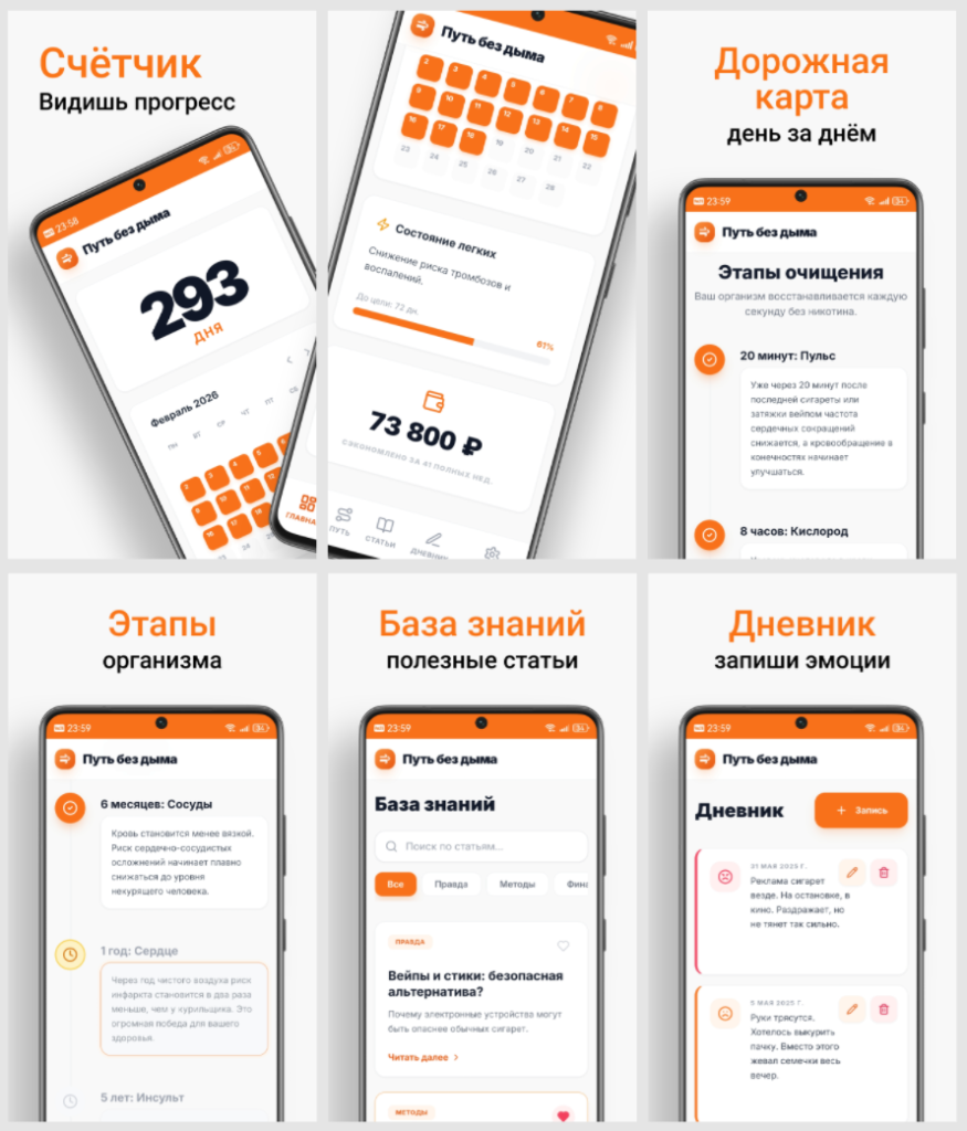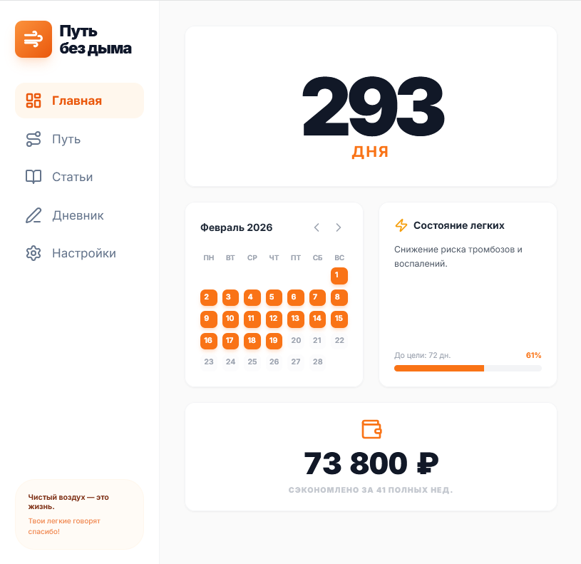 Это персональный счетчик отказа от курения и дневник восстановления здоровья.